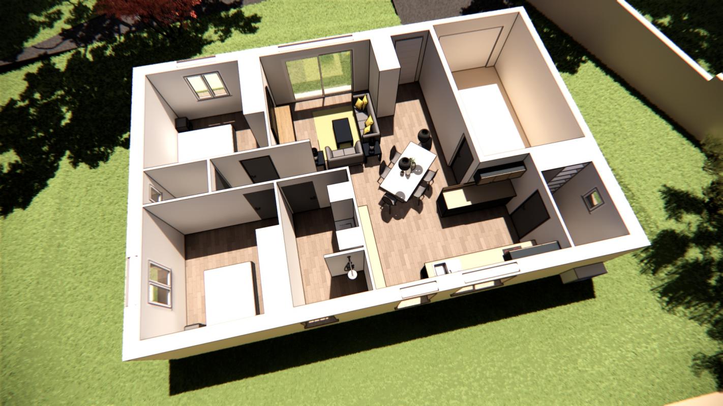 Par exemple une maison de 75 m² de plain-pied comprenant 2 chambres, un wc, une salle de bain et un cellier en plus d'une belle pièce de vie. Elle est complétée par un garage de 15 m². Cette villa sera chauffée et isolée conformément à la RE 2020 ce qui vous assurera des économies sur vos factures de chauffage.